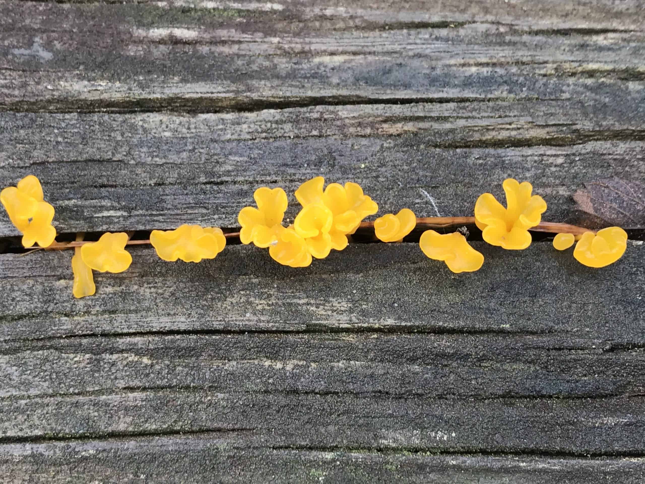 The lichens and fungi sems to flourish in the rain. Their colors are more vivid making even the cream and brown lichens look like velvet or satin. I would love to have a time-lapse photograph of certain places to see how fast they grow. The jelly fungi swell up to ten times their size with the moisture. Even the less colorful lichens wear a rich color with the moisture. A walk in the rain always brings discovery of newly minted lichens, or at least ones that are now more vibrant due to the rain.